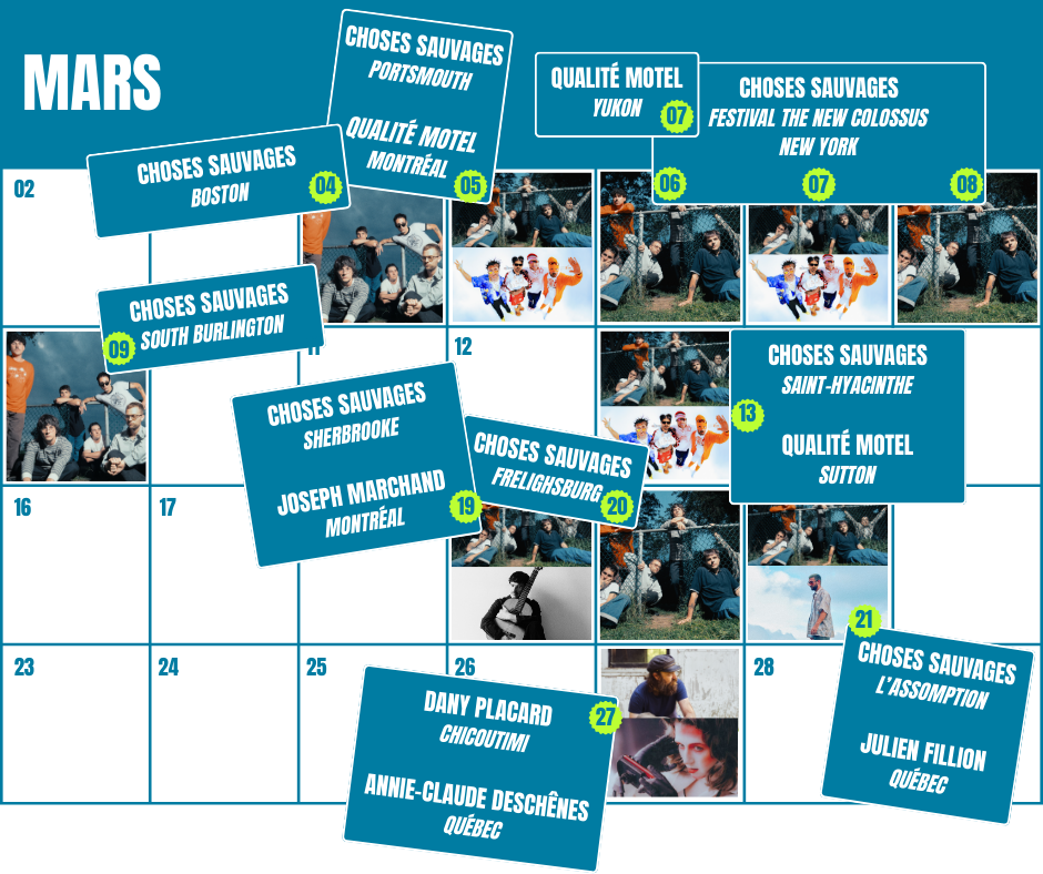 Production de spectacles Label Gérance Tous Production de spectacles Label Gérance NOUVELLES Nouvelles 11 févr. 2026 Deux nouvelles pièces de Soleil Secret 11 févr. 2026 En savoir plus → 11 févr. 2026 5 févr. 2026 Joseph Marchand - Treize miniatures 5 févr. 2026 Treize miniatures, nouvel album de Joseph Marchand En savoir plus → 5 févr. 2026 18 sept. 2025 Vulgaires Machins lance un double extrait: Terminé le fun et Om mani padme hum 18 sept. 2025 En savoir plus → 18 sept. 2025 9 sept. 2025 Rodéo - Le nouveau single country-rock de ALICE 9 sept. 2025 En savoir plus → 9 sept. 2025 22 août 2025 Annie-Claude Deschênes dévoile un premier remix de sa chanson Main de Fer 22 août 2025 En savoir plus → 22 août 2025 20 août 2025 « St-Placide, l’été » : le nouveau single de Joseph Marchand 20 août 2025 En savoir plus → 20 août 2025 14 août 2025 Une tournée en Ontario et aux États-Unis pour Julie Doiron 14 août 2025 En savoir plus → 14 août 2025 SORTIES RÉCENTES ALICE VALAIRE CHOSES SAUVAGES BARRY PAQUIN ROBERGE QUALITÉ MOTEL JULIEN FILLION ZOMBIE LIFE MON COEUR DOUANCE FLORE LAURENTIENNE DANY PLACARD JULIE DOIRON JOSEPH MARCHAND VULGAIRES MACHINS SOLEIL SECRET LAURENCE-ANNE ANNIE-CLAUDE DESCHÊNES